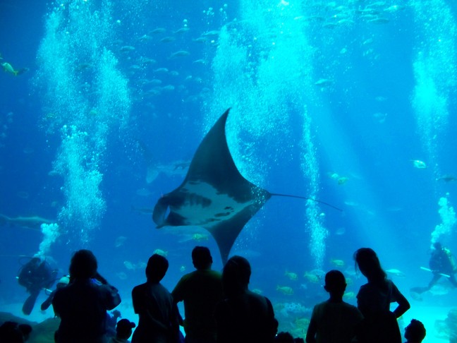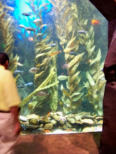 | There was a huge tank loaded with interesting sharks and fish and numerous views from the side and even a tunnel underneath with a plexiglass roof/sides. |