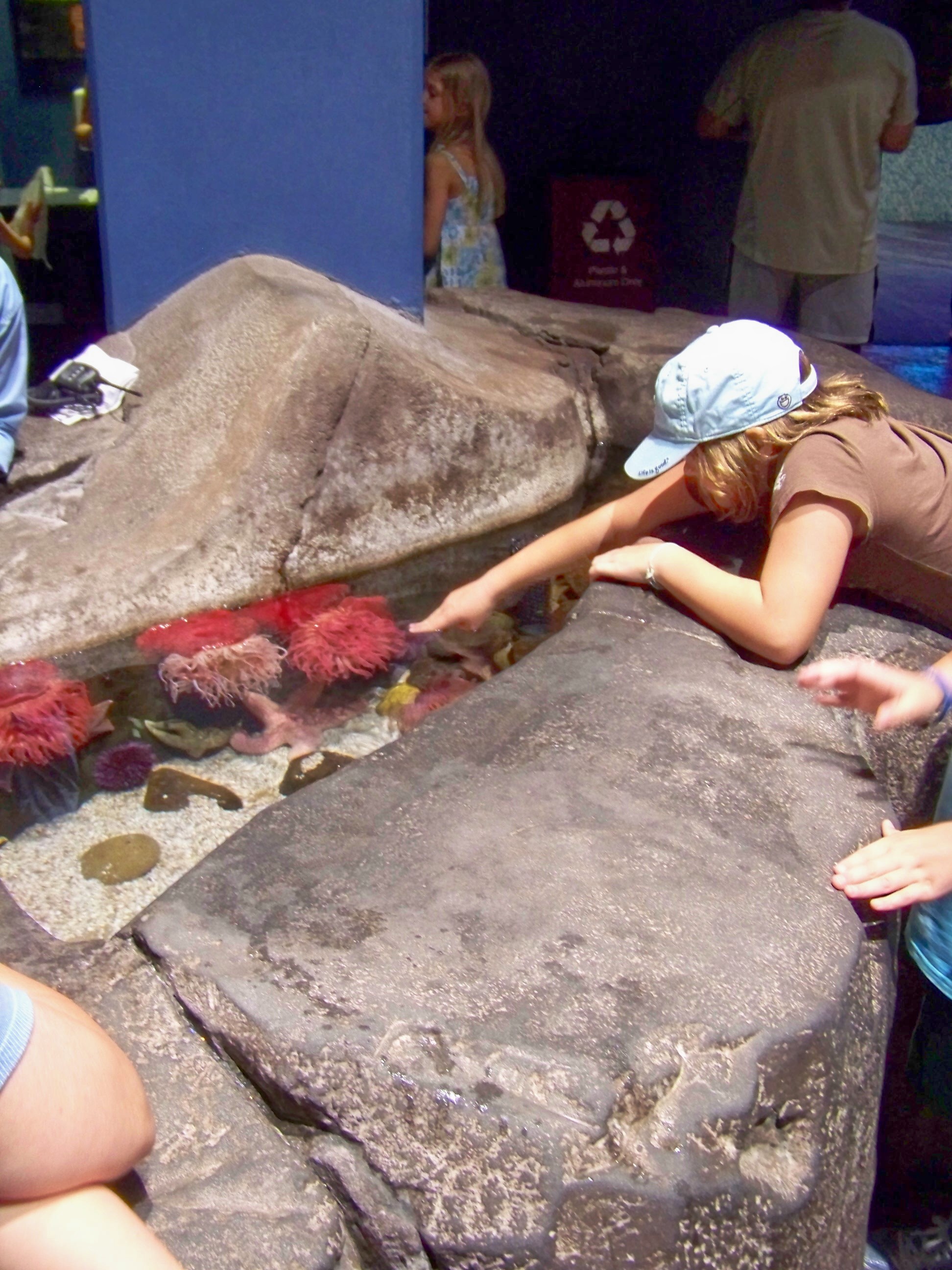 | They had a fun otter display so you could see them playing and otters are always fun (above). You could even crawl through tunnels to get a center view from a portal (Eric above). There were also exhibits where you could touch anemones, sharks, etc.. |