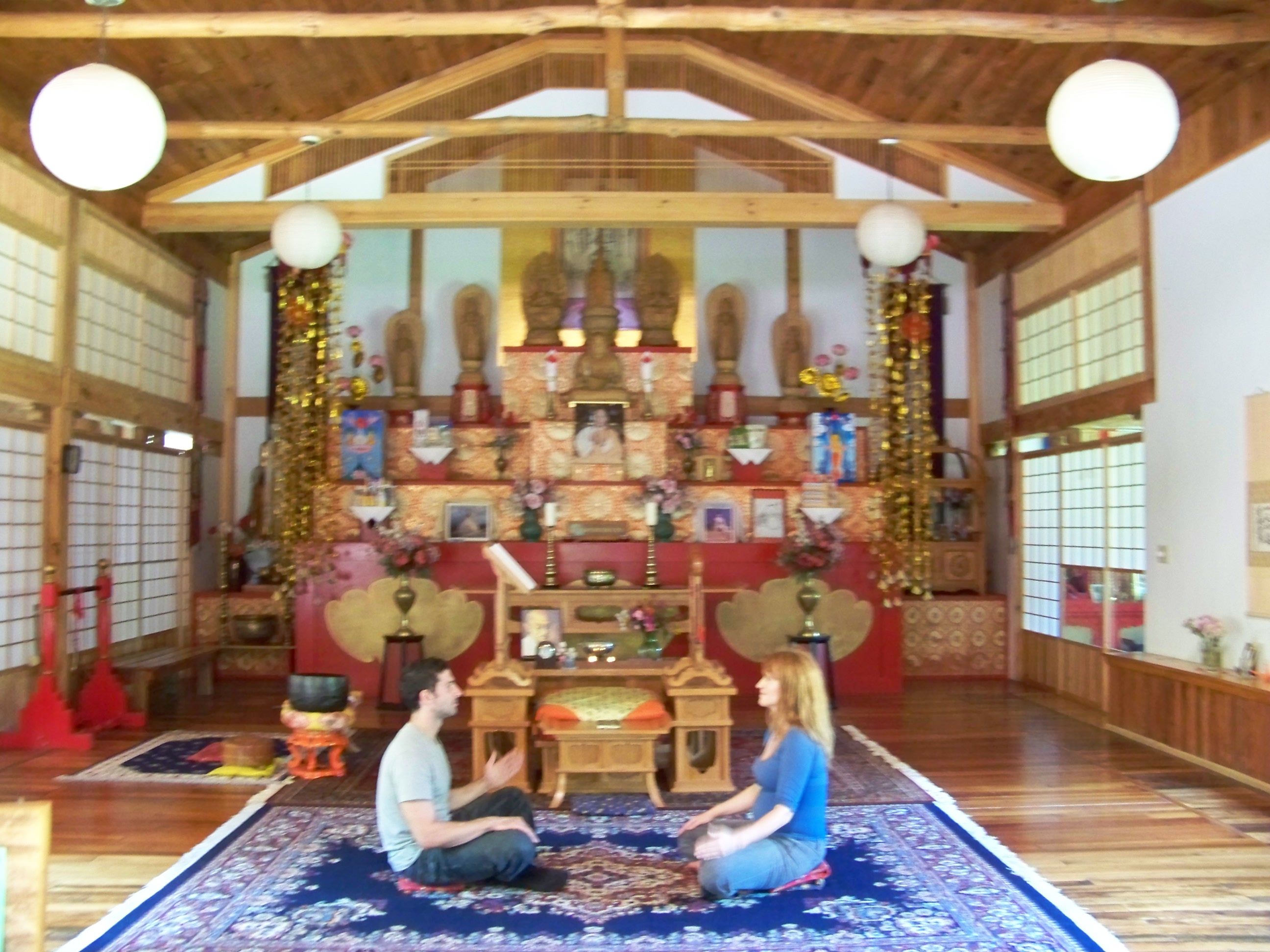 | To get to the Peace Pagoda you were asked to walk up the hill on the drvieway shown above. There was the temple and living quarters for the Japanese Buddhist nun who lives there most of the year. There was also the monument shown here. Below are pictures of the temple and its interior where I meditated for a few minutes. |